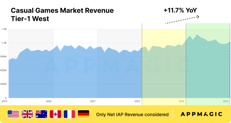 The casual gaming industry experienced a remarkable year in 2024, generating $15.2 billion in in-app purchase (IAP) revenue across major markets. A recent report from AppMagic reveals that Dream Games’ Royal Match dominated the match-3 subgenre, earning 51% of its total IAP revenue in top Western countries, including the US, UK, Canada, France, Germany, and Australia. Despite this success, the broader match-3 market showed signs of decline, with an 8% revenue drop when excluding Royal Match and a 12% decrease in downloads even with its performance factored in.