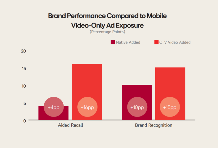 CTV campaigns that incorporate native and mobile video components deliver a 60% lift in brand recall, all while being perceived as less intrusive by consumers. The report suggests that brands already using CTV video could see a 10% lift in brand recognition and a 13% boost in ad recall by adding native and mobile video formats.
