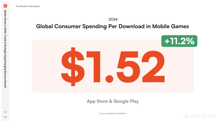 In 2024, global consumer spending per mobile game install rose 11.2% year-over-year to reach $1.52, a record-breaking figure that offset a simultaneous 6.6% decline in total game downloads. This paradox of falling installs and rising revenue paints a picture of an industry becoming more strategic, efficient, and sophisticated in its monetization practices.