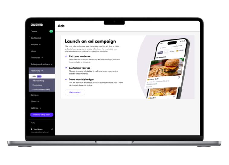 Unlike Grubhub’s current sponsored listings, which are managed for merchants as part of the Premium marketing package, these new advertising placements empower all partners to customize the frequency, placement, and targeting of their ads, regardless of their marketing tier.