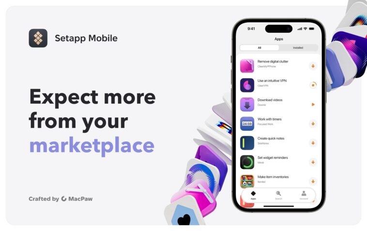 Setapp Mobile distinguishes itself by offering an app catalog that is free from in-app purchases. Some of the popular apps available at launch include MacPaw’s CleanMy®Phone and ClearVPN, alongside third-party options like Riveo, BusyCal, and Awesome Habits.