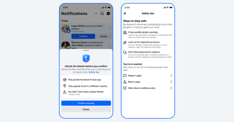 - Facebook Friend Request Alerts: Users may see notifications when a friend request originates from an account with few mutual connections, a recent join date, or indications it is based in another country — traits Meta associates with cloned or deceptive profiles.
