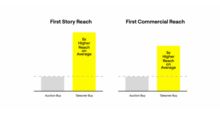 The joint analysis, based on 49 campaigns across Q4 2024 in the Middle East and North Africa (MENA), shows that these takeover ads deliver significantly stronger performance than auction-based buys. According to the findings, First Story Takeovers reached up to eight times more users, while First Commercials achieved five times higher reach compared to their auction equivalents. Cost efficiency was also improved, with CPMs for First Story campaigns averaging 22% below planned, and First Commercials delivering 47% savings.