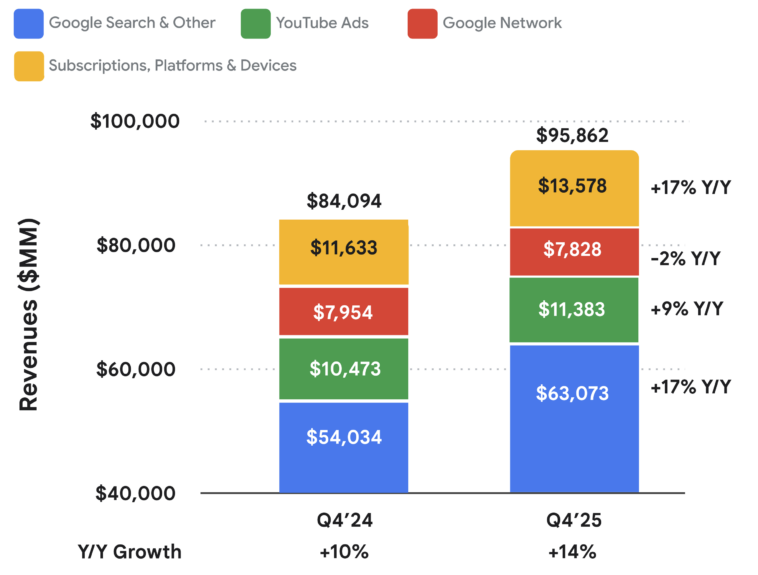 In the fourth quarter, YouTube reported ad revenue of $11.38 billion, up 9% year over year. While growth came in below analyst expectations, the company emphasized changes in how and where advertising dollars are being generated across the platform.