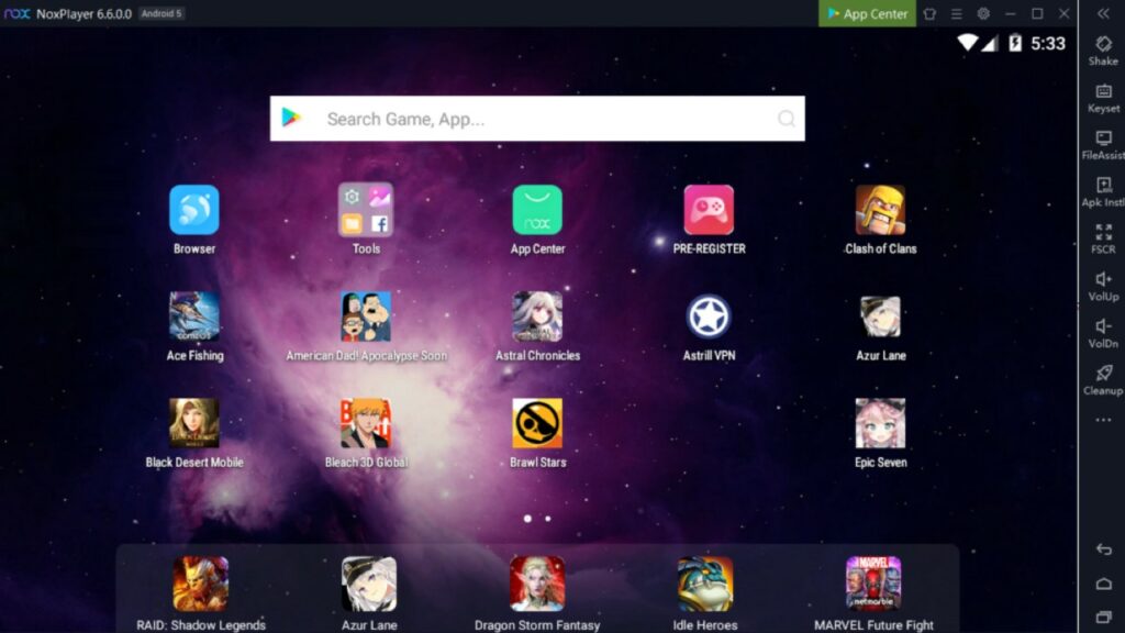 Noteworthy for being among the early adopters of features like keyboard mapping, NoxPlayer incorporates a recognizable toolbar along the window’s right side, a standard feature in contemporary Android emulators. Additionally, users can capture screenshots, record videos, and engage in various other functionalities. In our testing, Nox exhibited commendable performance in handling our test games.