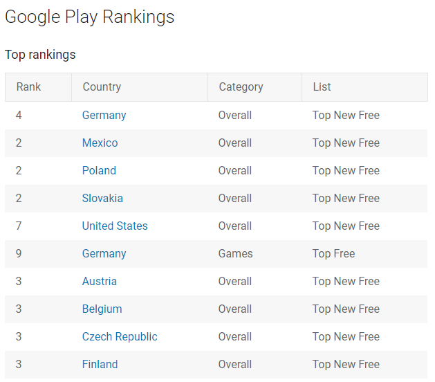 As of May 15, 2020, it has managed to make it to the top 10 in Overall in many countries including the United States, Germany, Mexico, Poland, Slovakia, Belgium, Austria, Finland and the Czech Republic. You can view the details in the table below.