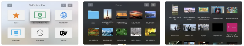 FE File Explorer Pro TV is a beneficial and wonderful media player app that ranks among the best Apple TV apps. With FE File Explorer Pro TV, users can easily stream music, videos, and photos from their PC and NAS to their Apple TV. Users can use the app to connect to WebDAV, FTP, and SFTP servers, as well as automatically discover computers and NAS. FE File Explorer Pro TV supports video formats such as MOV, MP4, AVI, XVID, MKV, RMVB, WMV, and FLV and has two different themes, light and dark.