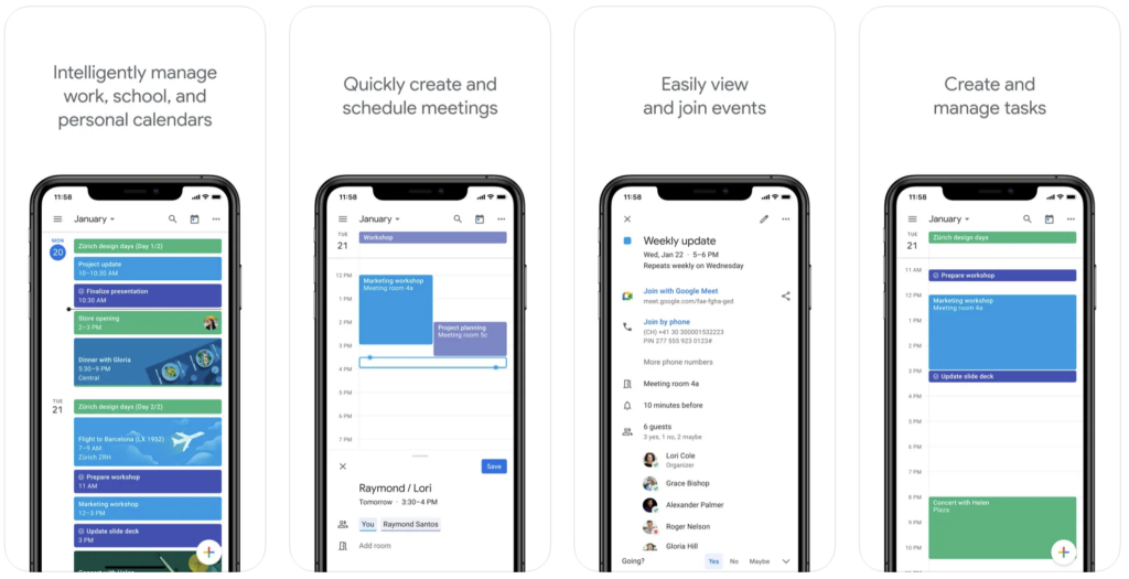 Google Calendar is the official app that seamlessly integrates with your iPhone or iPad. With different viewing options, event suggestions from Gmail, and task management, it’s a versatile tool for organizing your schedule. The app also supports video conferencing and is part of Google Workspace, making it a powerful all-in-one calendar solution.
