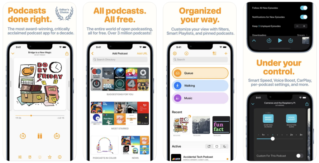 Overcast redefines the podcast experience with its user-friendly interface and smart features, and it ranks among the best apps for iPhone 14 Pro Max. From Smart Speed, which saves time without compromising audio quality, to Voice Boost, which ensures consistent volume, Overcast is designed for podcast enthusiasts. Create custom playlists, receive notifications for new episodes, and enjoy a seamless listening experience. It’s a must-have for those who value both substance and style in their podcast consumption.