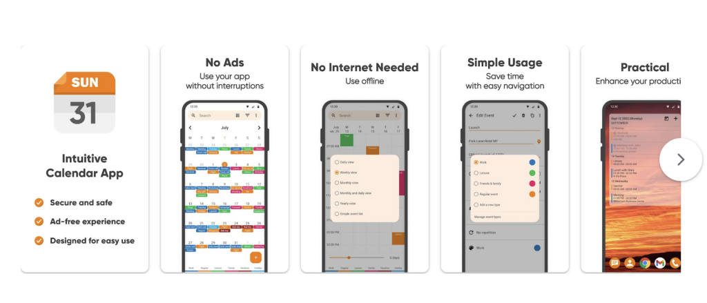 Simple Calendar offers the advantage of being an open-source app, ensuring a hassle-free experience devoid of bothersome ads or pop-ups. Beyond its ad-free environment, the app extends support to all major calendar services, providing users with seamless integration.