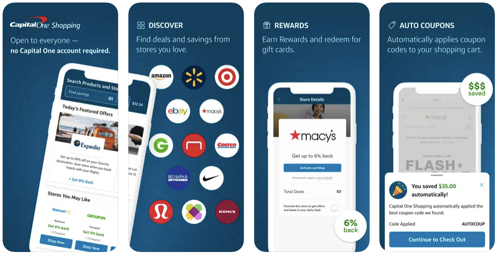 Capital One Shopping is an app that helps you save money while shopping online and is among the best coupon apps for Android and iPhone. The app does not require a Capital One account. Capital One Shopping helps you find deals, and savings and earn rewards from the stores you love. Also, users can easily find and apply existing coupon codes with Capital One Shopping.