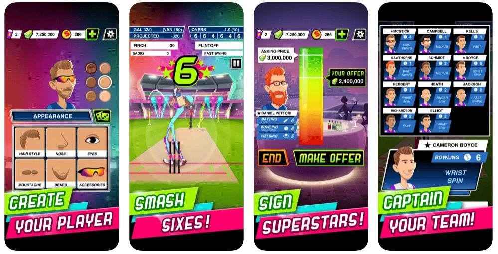 In Stick Cricket Super League, you can choose your team from 70 teams around the world, create and customize your character before heading out onto the field, and bolster your squad with some genuine star firepower by negotiating seasonal contracts with the world’s best players. Your goal in the game is to captain your team to global Super League glory.