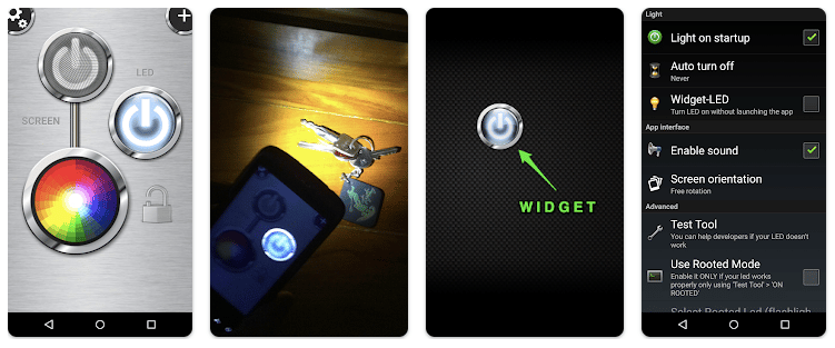 Designed to turn your phone into a versatile flashlight, Color Flashlight is among the best flashlight apps. The app offers the possibility to change the color and brightness of your phone’s screen and has a full range of colors. Also, Color Flashlight has features like using a camera LED as the torch and customizing the color of the screen flashlight.