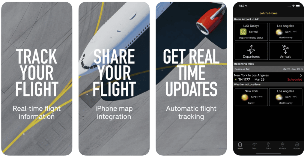 This app, which provides detailed information about more than 35 million flights a year, also gives more than 400 information about more than 400,000 commercial aircraft. FlightStats provides 1.7 million daily updates, and 90 million passengers access route information each year. Moreover, for those who use Siri, with FlightStats, Siri Shortcut has information about Departures, Arrivals, Route searches, or daily flights.