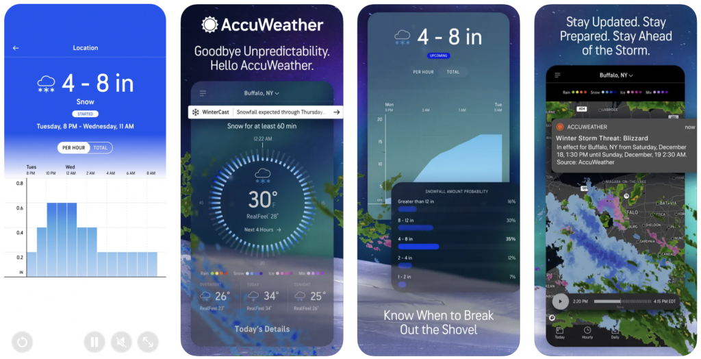 AccuWeather is a dependable weather app with a user-friendly interface. The app provides live and local weather forecasts, allowing users to plan their activities around the weather. The app provides users with advanced alerts on snowfall probability and accumulation in its winter weather forecast feature. AccuWeather’s daily forecasts include wind, air quality index, live radar, rain, UV index, snowfall, and other variables. AccuWeather users can view live snow, ice, rain, and temperature changes. The app allows users to see the weather forecast for the next 45 days.
