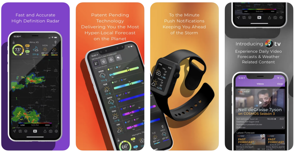 - Integration with Apple Watch: Companion app for Apple Watch provides convenient access to weather updates and alerts on the go.