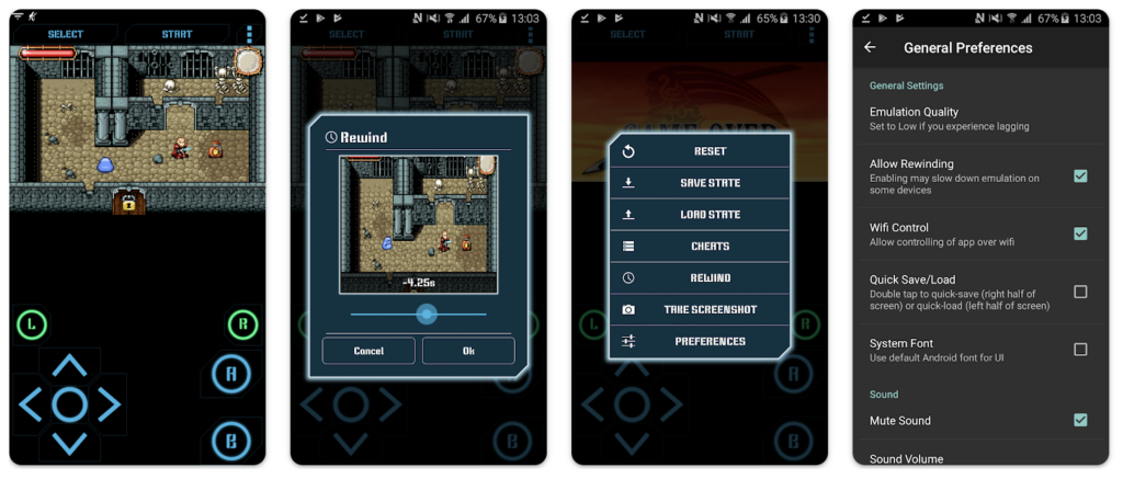 Pizza Boy GBA is a fantastic emulator known for its accurate emulation and fast performance. The emulator is designed to deliver smooth gameplay even on low-end Android devices. The app offers customizable virtual controls, turbo buttons, and support for external controllers, giving players the flexibility to optimize their gaming setup, and it ranks among the best GBA emulators for Android. Additionally, Pizza Boy GBA’s rewind feature lets you go back in time and correct any gaming blunders.