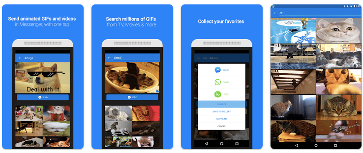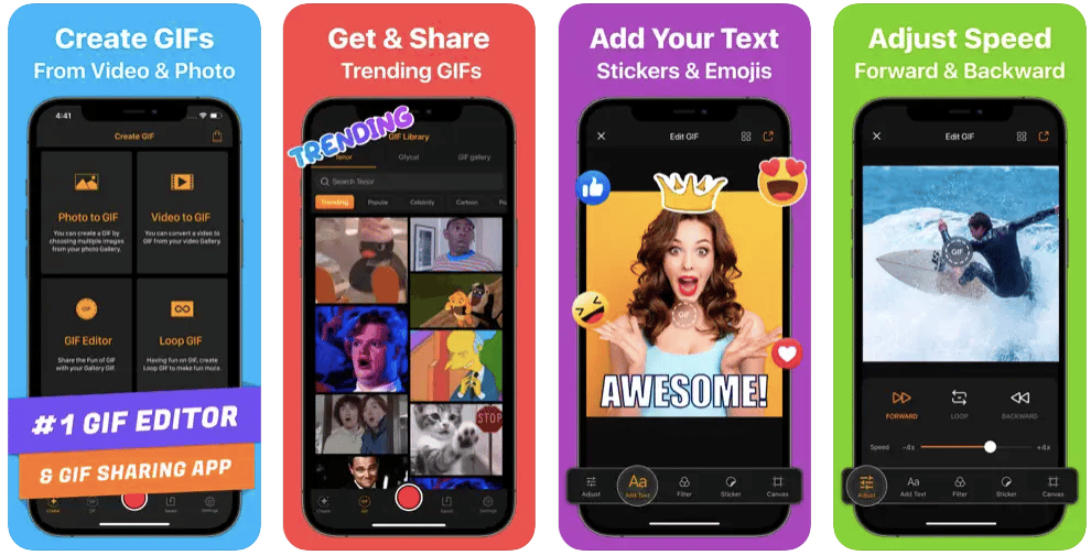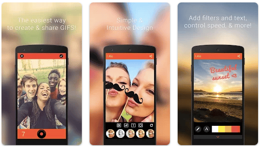 GIF Maker is a legendary app and deserves to be one of the best GIF-making apps. The app allows you to turn your photos into funny memes and share them on Instagram, Facebook, Twitter, Messenger, and More. The app has many impressive features like creating a GIF from a live Camera, Creating looping Video Clips, adding text to GIFs, adjust the frame rate of GIFs. In addition, users can add beautiful filters, emojis, stickers, and artwork to their gifs.