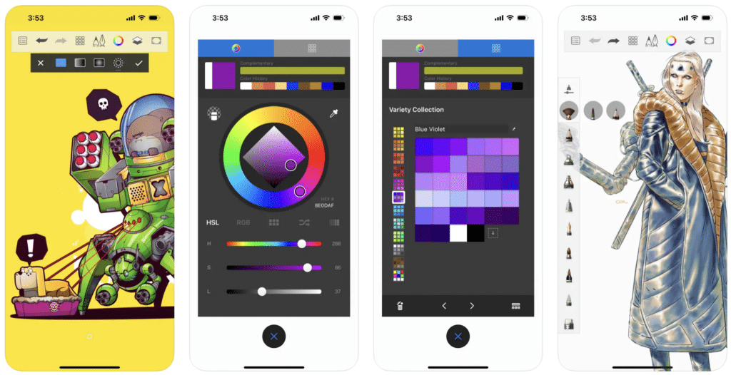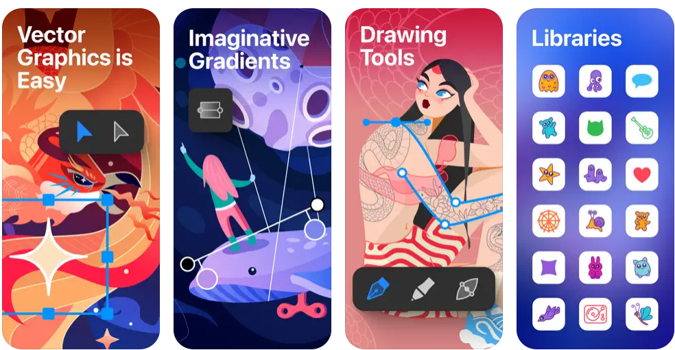 Users can easily import photos and back up their drawings to the cloud with Tayasui Sketches. While designing, Tayasui Sketches hides tools and offers a clean and comfortable canvas. The app stands out among the best graphic design apps for iPhone with the features it offers.