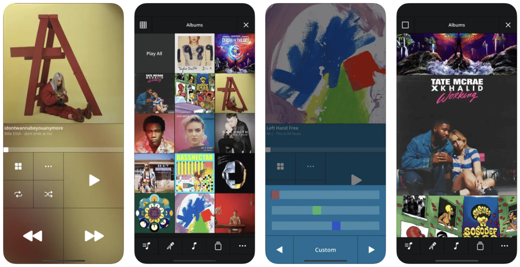 FLAC Player+ is one of the best music players for iPhone that provides lossless music enjoyment. Background sound, 24-bit and 32-bit audio output, and Bluetooth headsets are all supported by the app. Users can customize their themes with white, dark, blue, green, and purple colors. FLAC Player+ includes a 10-band equalizer and provides users with embedded cover art and lyrics. Music lovers can organize their songs by album, artist, composer, and genre.