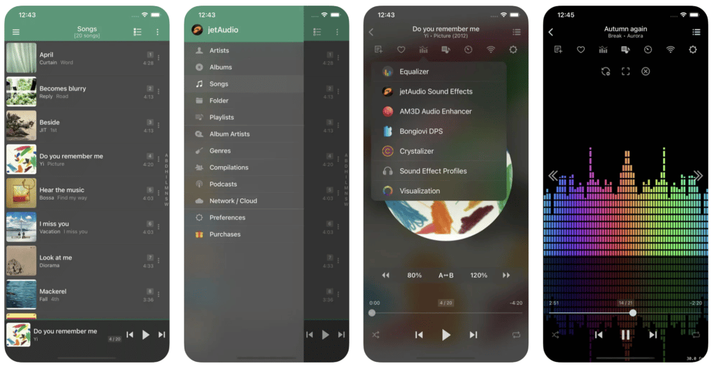 jetAudio – HD Music Player is an iOS music player app with great features. The app has automatic gain control to avoid sound fluctuations between tracks. Users can control the speed from 50% to 200% and view the lyrics with jetAudio. The app contains a 10-band graphic equalizer, pitch changer, crossfade, gapless playback, balance, and sleep timer for music lovers. In jetAudio, users can play music from shared folders on their local home network using Wi-Fi.