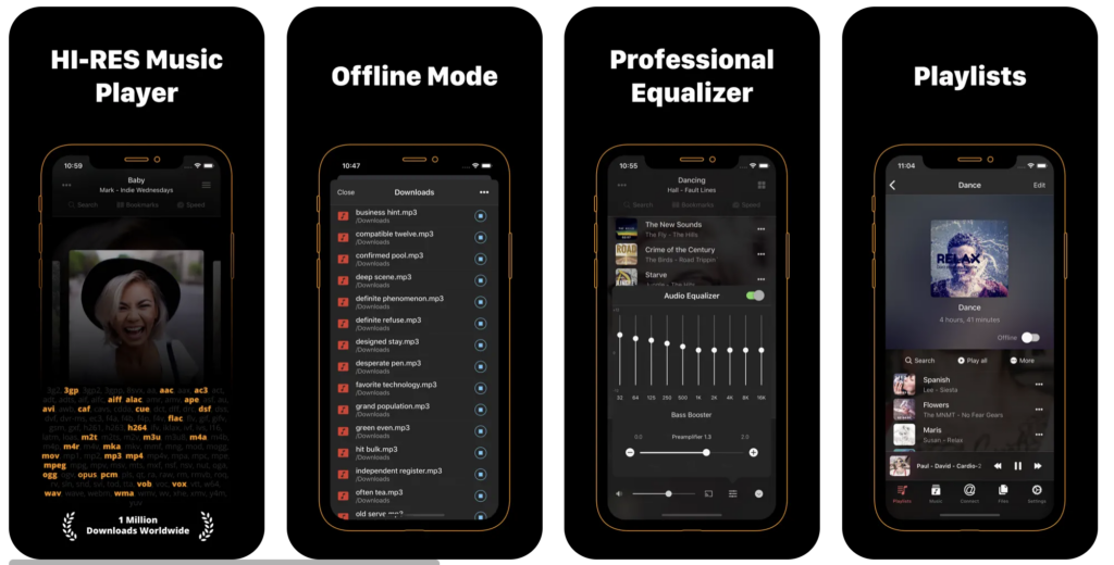 Flacbox: Hi-Res Music Player is one of the best music players for iPhone, and its features are well-liked by users. Flacbox includes audio equalizers, ID3 tag editors, audio playlists, audio bookmarks, shuffle mode, playback speed control, step verification, a file manager, and a sleep timer. The app allows users to transfer files over Wi-Fi.