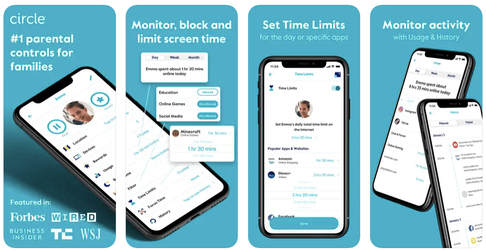 Circle Smart Family Control App is the most comprehensive and easy-to-use parental control app. Circle Smart has additional parental control features like pause, history, rewards, and bedtime. The app offers parents features to set screen time limits and filters.