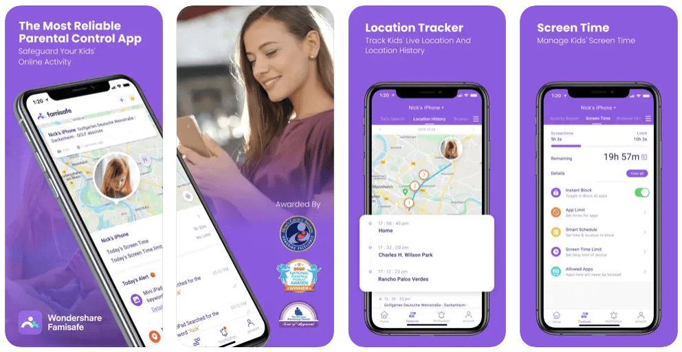 FamiSafe also reports to parents how much time children spend online. It helps you plan daily or weekly app usage with a remote screen timeline.