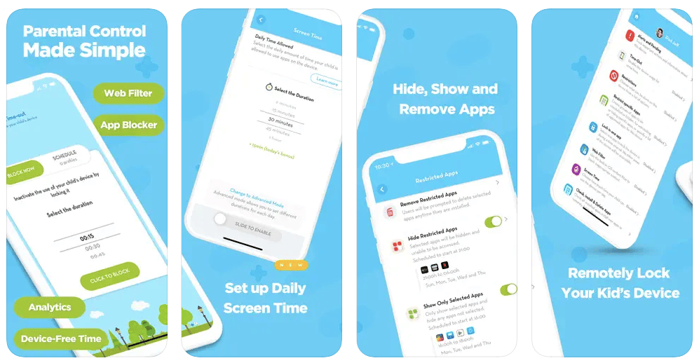 ScreenGuide is a parental control app with useful features like Internet filtering, a list of selected apps to be hidden or accessible by children, and much more, and it’s just one of the best parental control apps for iPhone. The app helps children use their time correctly with its daily screen time setting feature. With the timeout feature in the app, parents can lock the devices. Parents can also remotely install the apps they want on their child’s device and help them use the apps that are efficient for them.