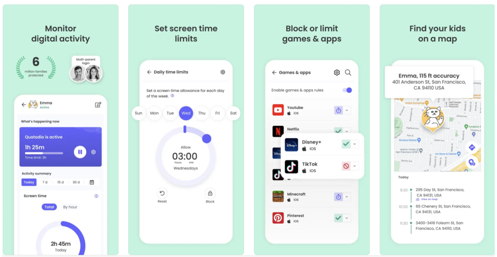 Qustodio is renowned for its powerful yet intuitive parental control capabilities. From monitoring social media activities and text messages to setting app time limits and tracking the device’s location, Qustodio provides a full spectrum of tools. Its detailed activity reports offer valuable insights into your child’s online behavior.