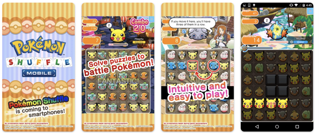 Pokémon Shuffle Mobile is a puzzle game in which three or more Pokémon must be lined up vertically or horizontally. Players attempt to solve puzzles to battle wild Pokemon. Pokémon Shuffle Mobile is a simple game that anyone can play. The game has a variety of difficulty levels and is regarded as one of the best Pokemon games for Android.