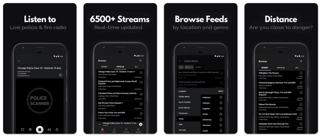 Scanner Radio is a handy app that facilitates access to important alerts and breaking news and is one of the best police scanner apps for Android. Users will get access to firefighters, NOAA weather radio stations, ham radio repeaters, and more from around the world with Scanner Radio. The app presents the most recently added browsers, the closest browsers, and the most viewed browsers to the users. When searching Scanner Radio, users can filter by location or genre, and add widgets to the screen for quick access.