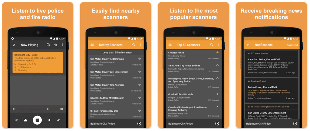 Police Scanner X is a highly successful app for police, fire, breaking news, emergencies, and more, and is among the best police scanner apps for Android. The app provides ten codes to its users to speed up their understanding of police radios. The app comes with more than 1000 feeds. Users can access the Chicago Police, Chicago Police, Denver Police/fire department/EMS, Ingham County Public Safety, Ingham County Public Safety/Portland Police, Waterloo District Police, Cincinnati Police, Northwest Ohio Digital/MARCS, Stockton Police, Minot Police/Sheriff/Fire/EMS and much more with the app.