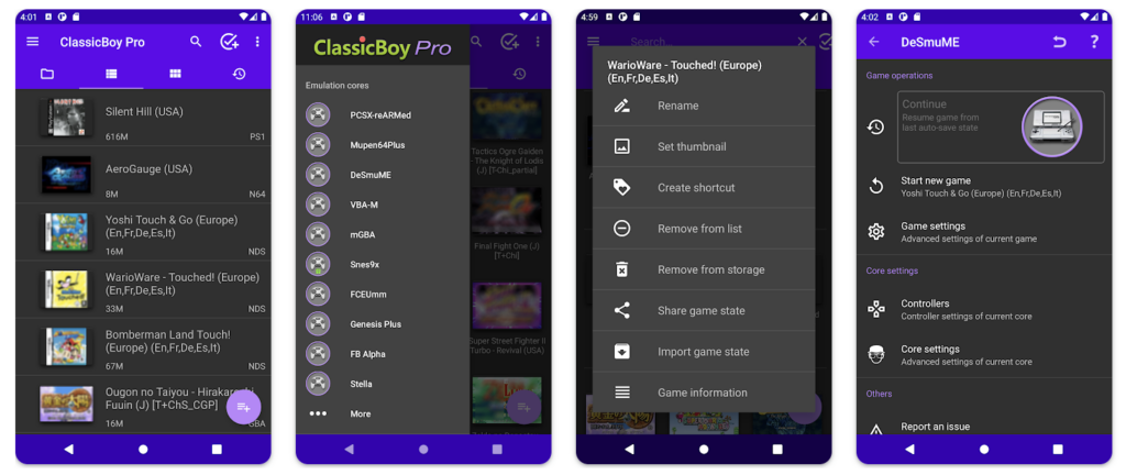 In addition to the traditional touchscreen and gamepad input, Classicboy Pro allows you to remap the buttons to gestures and accelerometers, making your gaming experience even more enjoyable. The professional version of the app also comes with a ROM scanner and game database, which makes it easy to find and sort your game library. Plus, with support for more than twenty emulation cores, including Snes9x, you can be sure that you’ll have a seamless and authentic SNES gaming experience on your Android device.