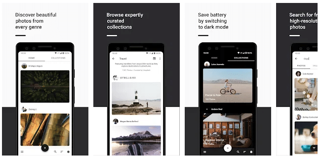 You can browse through categories, search for specific themes or photographers, and download wallpapers for free. Resplash also features a dark mode for comfortable browsing in low-light conditions and allows users to save their favorite images to collections for easy access.