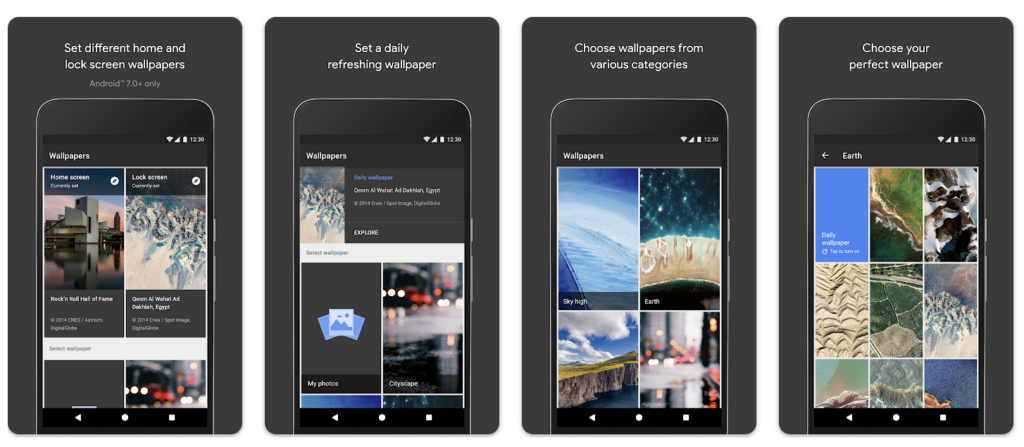 Last in our list of the best wallpaper apps for Android is Google’s own wallpaper app which allows you to Choose one of your own photos, an image from the Google Earth collection, a scenic landscape from Google+, and more. You can change the wallpaper as often as you like and pick your favorite category to get a new one each day.