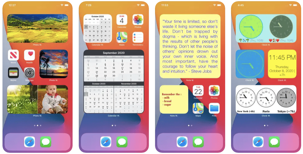 In addition, the app allows customizing widget icons and backgrounds. Users can change icon sizes from small to large and remove icon labels with the app. Launcher with Multiple Widgets offers functional accessibility for the visually impaired and Siri Shortcut support.