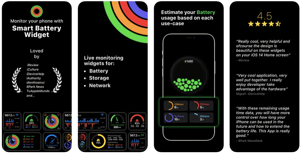 Smart Battery Widget is a specially designed app that lets you monitor battery, storage, and network activity from the home screen and deserves to be among the best widget apps for iPhone. Users can access battery status and real-time estimates of the device’s remaining game, video playback, and talk time based on battery percentage and capacity with the Smart Battery Widget. The app provides users with a lot of storage information such as total volume, used, and free space.