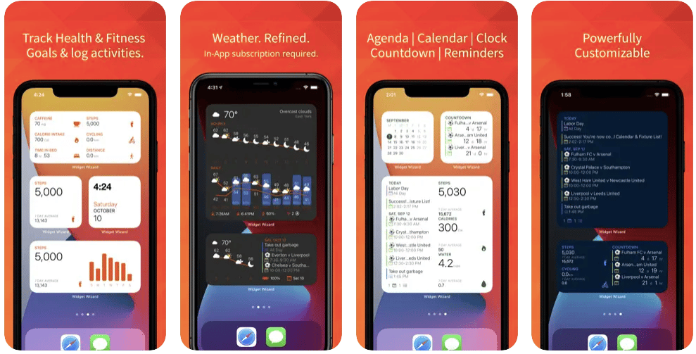 Widget Wizard is one of the best widget apps for iPhone that provides quick access to your favorite apps. The app has many widget data like 35+ health stats (step, bike, distance, etc), agenda widgets (reminders, calendar events), and weather. The weather widget requires a subscription and shares weather from over 45,000 weather stations. Widget Wizard provides a countdown widget for important events or days.