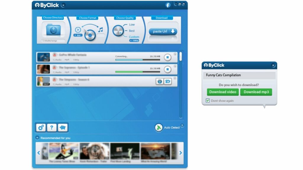 With By Click Downloader you can download videos from YouTube as well as Facebook, Soundcloud, Instagram, Vimeo, and many other platforms. Moreover, besides being one of the best and safest media download solutions developed for Windows users, you can also download mp3, playlists, live content, subtitles, and many more files with By Click Downloader. One of the biggest advantages of By Click Downloader is that it is fully compatible with almost all popular browsers.