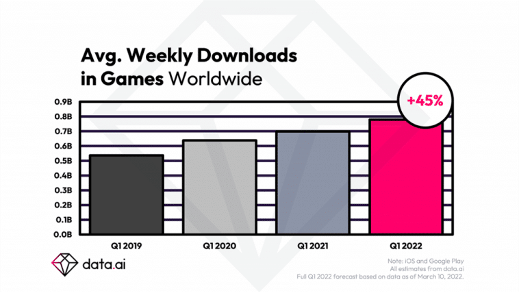 Per a new report from data.ai (formerly known as App Annie), consumer spending on mobile games is forecasted to reach $22 billion for Q1 2022, accounting for 73% of total spend on Google Play, and 60% on the App Store.