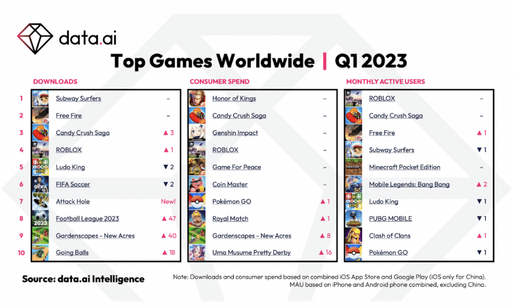 The app analytics company also revealed the top mobile games of Q1 2023, in terms of downloads, consumer spend, and monthly active users.