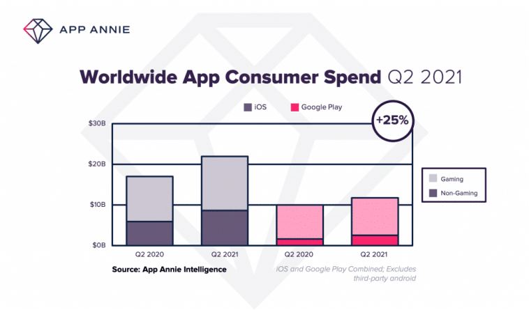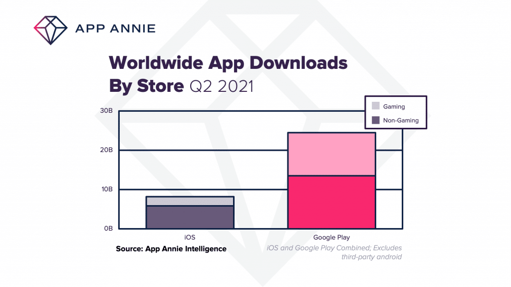 In Q2 2021, Google Play accounted for 25 billion downloads while iOS apps generated 8 billion.