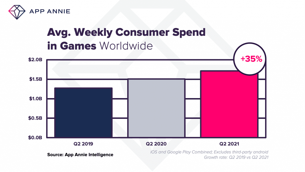 The data also shows that weekly consumer spending in mobile games increased by 35% and reached $1.7 billion in the second quarter of 2021. In addition, weekly downloads surpassed 1 billion.