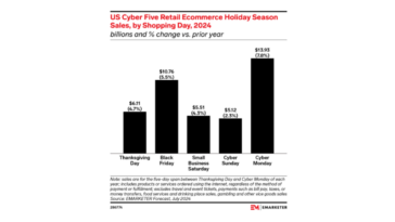 Across the five-day period from Thanksgiving through Cyber Monday, online sales reached $44.2 billion, up 7.7% from last year. Black Friday delivered $11.8 billion—its second year of stronger growth than Cyber Monday—driven by earlier and more competitive discounting. Weekend spending also hit record levels with $11.8 billion in sales, while Thanksgiving brought in $6.4 billion.