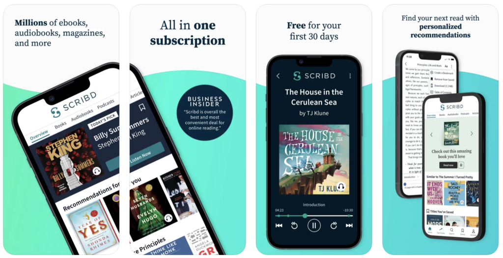 Scribd is an exceptional free book app for iOS, offering access to a vast digital library. With millions of audiobooks, ebooks, magazine articles, podcasts, sheet music, and research documents, Scribd is a haven for readers. From true crime to fiction, personal growth to romance, it covers a wide range of genres.