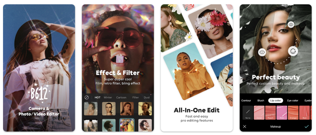 B612 is an all-in-one camera and photo/video editing app that offers a wide range of features and tools to make your moments special. You can create custom filters, access trendy effects, and enjoy daily updates of AR effects and filters.