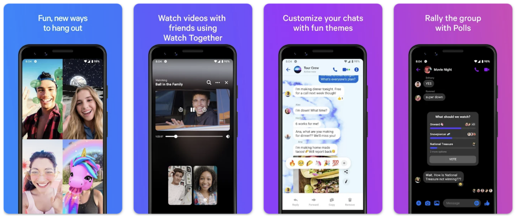 Facebook‘s Messenger app provides a comprehensive communication experience. The app connects you with Facebook friends, supports video calls with up to eight people, and offers unlimited free text messages. You can watch videos and shows together, share your location, and stay in the loop with friends and family.
