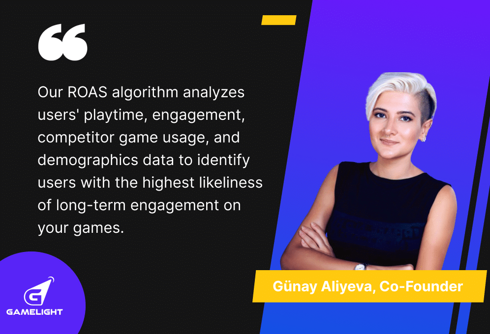 Gamelight’s Co-Founder Günay says: “Gamelight’s algorithm analyses users’ playtime, engagement, competitor game usage & demographics data to identify users with the highest likeliness of long-term engagement on our partners’ games.”