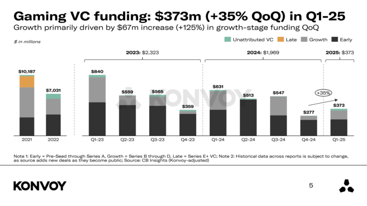 Konvoy’s report points to a broader $700 million infusion into the private gaming market during Q1, a 23% boost over the previous quarter. Much of this growth stems from a surge in growth-stage funding, which rose by an impressive 125%, signaling increased investor confidence in scaling gaming ventures.